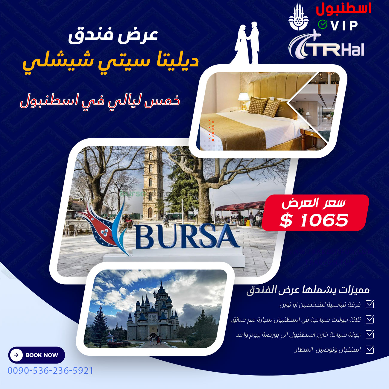 افضل عروض السفر لتركيا بكج اسطنبول خمسة ليالي فندق ديليتا سيتي في شيشلي يشمل سيارة مع سائق بثلاثة جولات