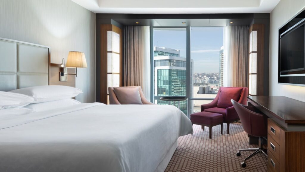 يقع فندق شيراتون بورصة في منطقة نيلوفر الراقية، ويُعد من أبرز فنادق بورصة فئة الخمس نجوم، حيث يجمع بين الفخامة والراحة، ويقدم مجموعة متنوعة من الغرف والأجنحة لتلبية احتياجات النزلاء المختلفة.