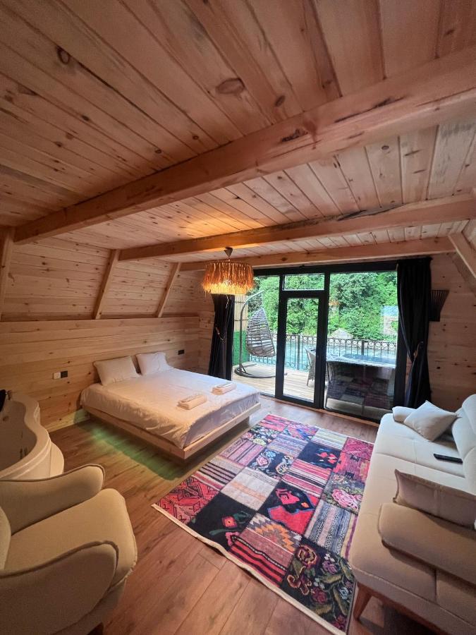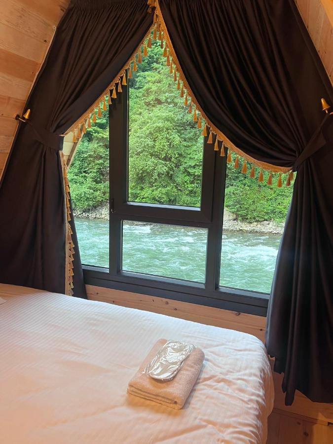 اكواخ الغنت ايدر Elegant Residence ve Bungalov اطلالة جميلة و العازل حتى صوت النهر ما تسمعه اذا كان مقفل الزجاج.